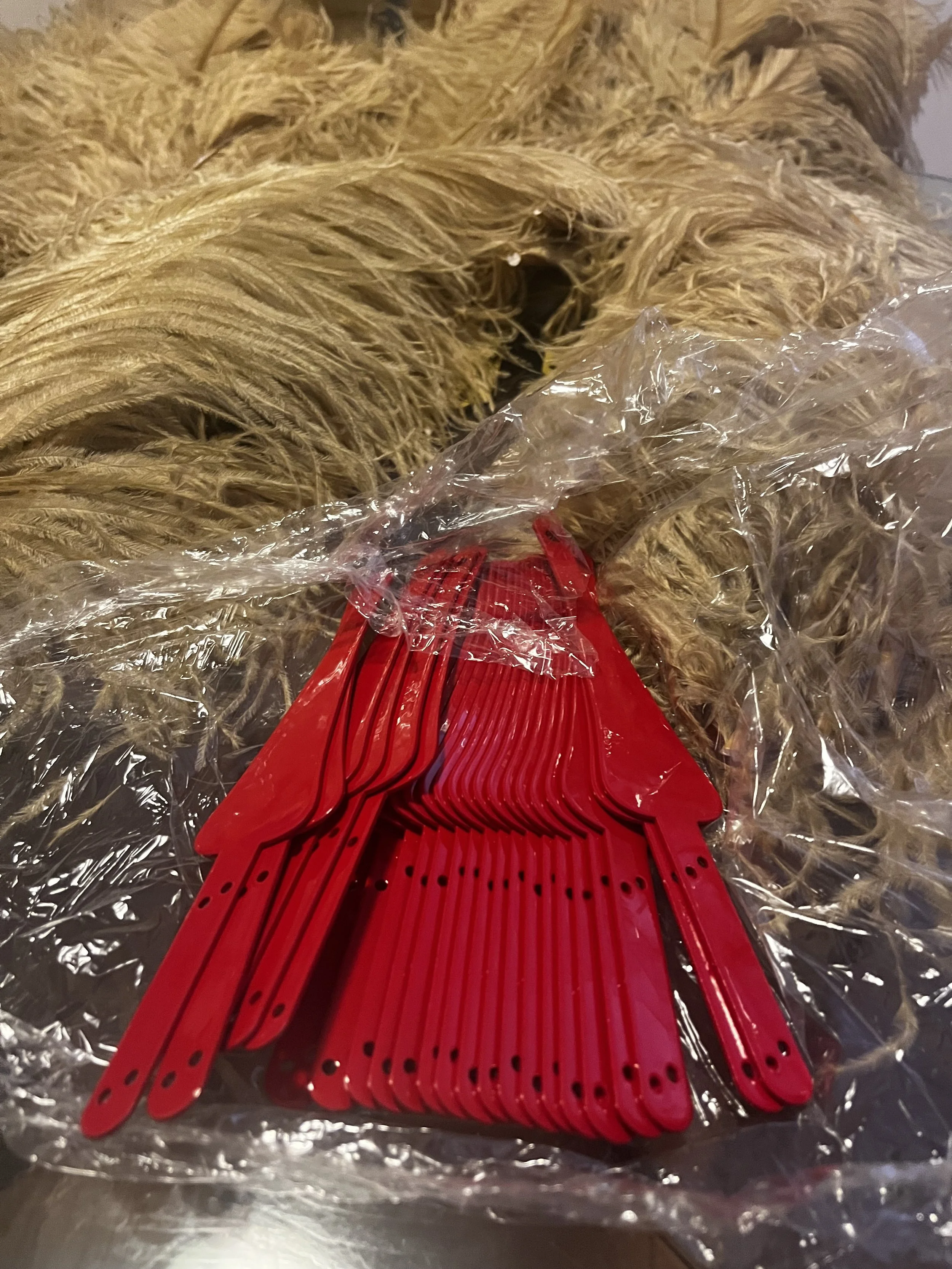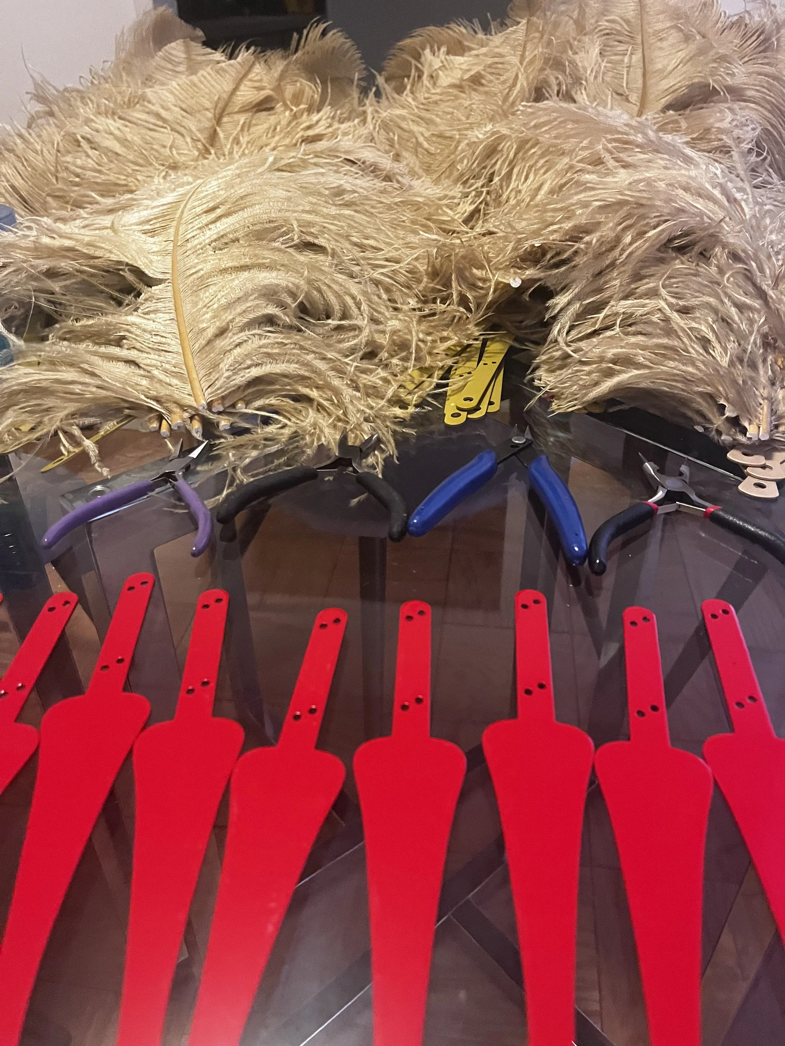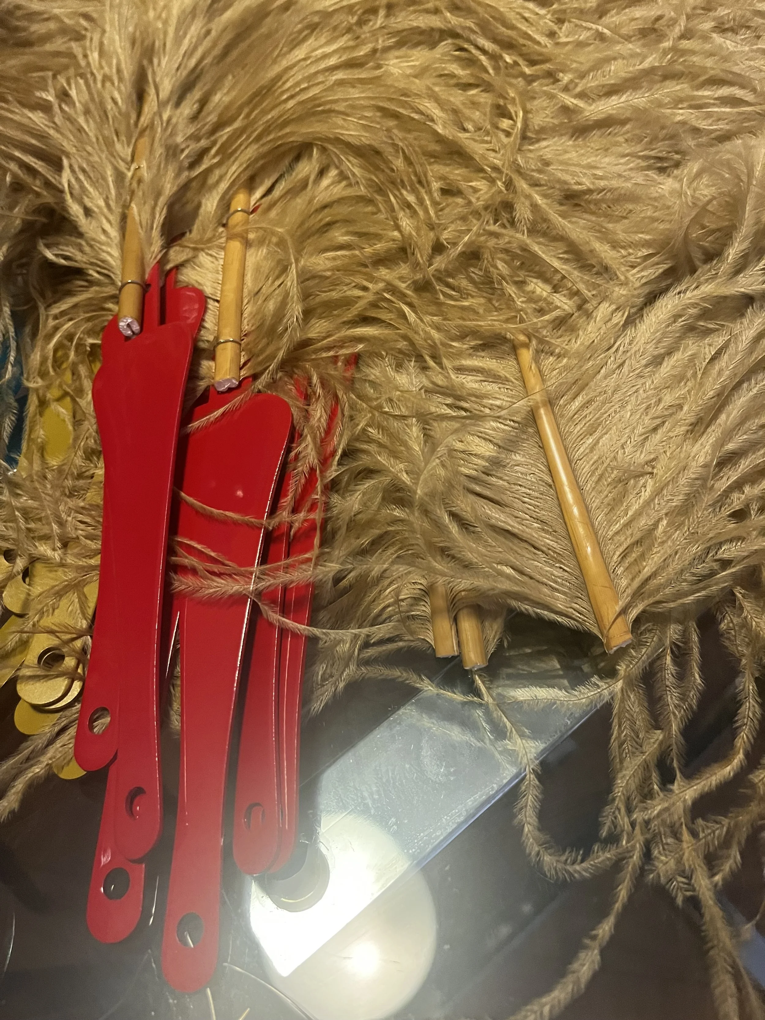 Golden Olive Ostrich Femina Plumes with Black Staves